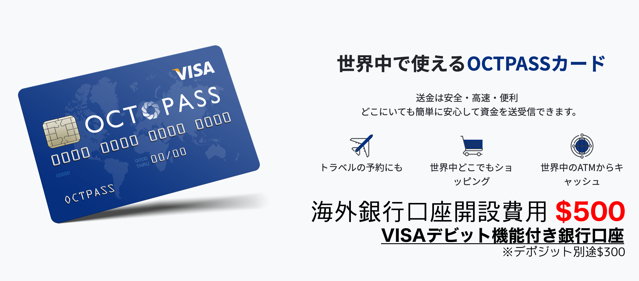 OCTPASSウォレットは、ビットコイン(BTC)を代表とするブロックチェーンを使った仮想通貨(暗号資産)と銀行口座に紐付いたデビットカードとを融合した、ユニークなGlobal E-Walletサービスです。
